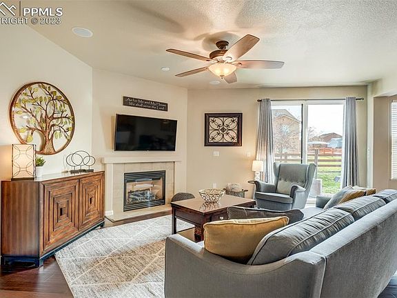 Rare Availability In Barnstormers Landing... And it shows like a Brand New Model Home! Prepare to be "Wowed" by this ranch style beauty built by Classic Homes. Enjoy instant curb appeal nestled on a large corner lot with a manicured lawn and an inviting walk to the covered entryway. The real treat waits inside... Rich wood floors sprawl across the main level, welcoming you into this bright, open floorpan flooded with natural light. The large living room features a cozy fireplace for those cool Colorado nights, and opens to the ample dining room and adjacent kitchen. It's the perfect layout for entertaining or any gathering! The kitchen is Amazing... featuring gorgeous granite countertops, modern glass backsplash, tons of cabinet space, a spacious pantry, a large island/bar, and stainless steel appliances including a gas stove! Your "true main level living" continues with the generous Master Suite and adjacent Master Bath. You'll love unwinding in the jetted Jacuzzi tub while taking in the granite and tile finishes around you. There's also a freestanding shower and large walk-in closet complete with custom storage built in! The main floor also offers a 5th bedroom/optional office positioned near the half-bath. It's a great space for "work/school from home" or as a guest suite. A trip downstairs opens to the massive finished basement and the wide-open Great Room, perfect for creating whatever type of space you can imagine! There's even three more bedrooms and full bath! From upstairs, step out and enjoy outdoor living by unwinding on your back patio or playing in the fenced backyard. This sought after neighborhood is just minutes to the Colorado Springs airport, an easy commute to Ft. Carson, Peterson AFB and Schriever SFB, and convenient access to I-25. Shopping and entertainment is also close by. Check out the virtual tours on this amazing home!