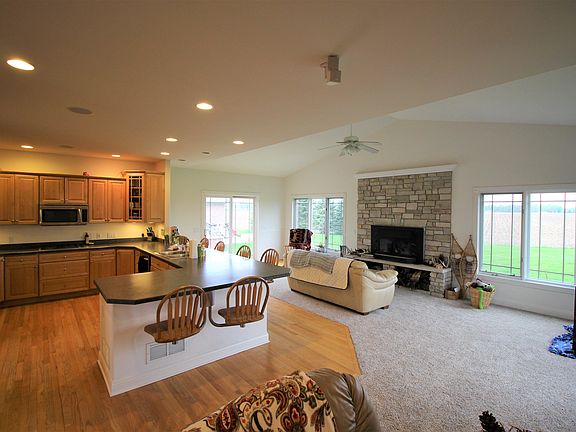 First time offered is this nearly 2400 square foot Brick Ranch with Attached 3 Car Garage and Detached 55 x 25 Brick Heated Garage on over 1.3 Acre Lot. Located on Cul-De-Sac and backing up to Farm Land. Unique Open Concept Floorplan with Arched Ceilings and Fireplace. Dining Room with Archway and Pillars. 3 Bedrooms, 2 Full Baths, Living Room, Family Room, Dining Room, Kitchen, and Laundry Room on Main Level. Exercise Room, Rec Room, Game Room, Full Wet Bar, Storage Area, Bonus Room, and Half Bath in the Finished Basement. Outbuilding Has Furnace, Ceiling Hoist, and 220 Electric. Newer roof. Contact Listing Agent Justin Carmody for more info or to set up a day/time to view the property.