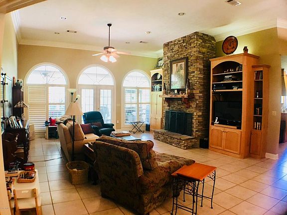 High quality & custom built 3 bed, 2.5 bath in West Lauderdale! This beautiful home features: an open living room showcasing a stacked stone FP, tall ceilings, nice crown molding, built-in shelving, & easy maintenance tile flooring; lovely formal dining space; a home office; large kitchen with custom hickory cabinetry, island with cooktop & warmer, double wall oven, & bar seating; a huge breakfast room with a great view of the backyard; large laundry/pantry; mudroom; spacious master with 2 walk-in closets, ensuite bath with large tub, separate shower with bench, & double vanity. Outside, you'll enjoy the privacy of 10+/- acres, a spectacular covered patio overlooking a gorgeous yard and pond, and scenic wildlife.