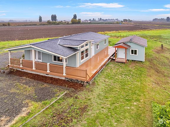 This is your "birds chirping and smell of fresh air" type property. Truly stunning views of the rolling hills and mountains from the 600 sq ft wraparound deck. Remodeled top to bottom, inside and out. The large primary bedroom has a garden tub and separate shower, so you can unwind after a long day. Includes a separate studio building w electricity. Home office? Art studio? Workshop? Garden space up front with oodles of parking (space for RV). This home is located just 30 minutes from Bellingham, so you're close to all the amenities you need, but far enough away to escape the hustle and bustle of city life. If you're looking for a truly unique and special place to call home, take a look in person and envision how you'd make it your own.