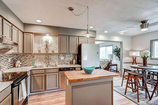 FHA ready....Agents bring those buyers ready for biggest best value in ALL of Cherry creek school district. The 5bed 4 bath has near 2500 finished sq feet and is right across from Mission park!From the minute you enter new floors great you on the main with a open layout to the kitchen. The living room has a reclaimed wood fireplace mantle that are breathtaking. The Kitchen has stainless appliances, quartz granite counters and stylish backsplash that are AMAZING! The center island is BUTCHER BLOCK..and has a nice sized space for larger kitchen table ! ALL 3 beds on the main floor are spacious! Master suite is ready for your king size bed, prep/sitting area and has large walk in closet! 2 main floor bath have been remodeled Perfect. This Corner lot has some new pro landscaping and large deck for viewing the parkgoers. great functionl floorplan, and cherry creek schools. this is a great value for the square feet!!!! The bedrooms in basement are nonconforming BRING ALL OFFERS