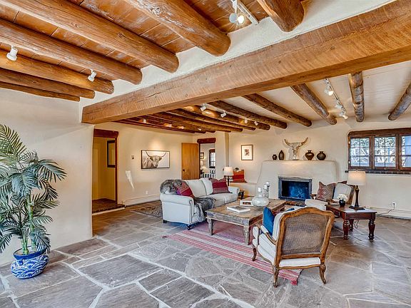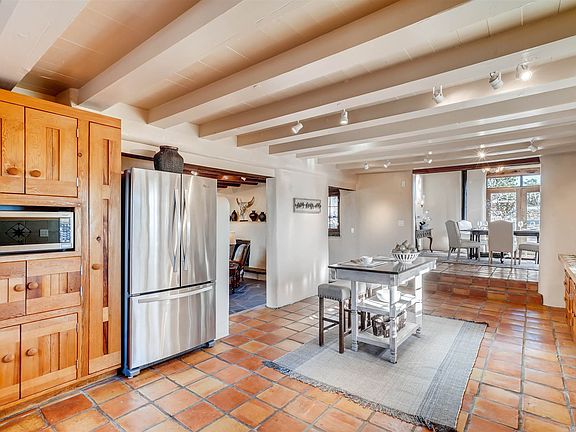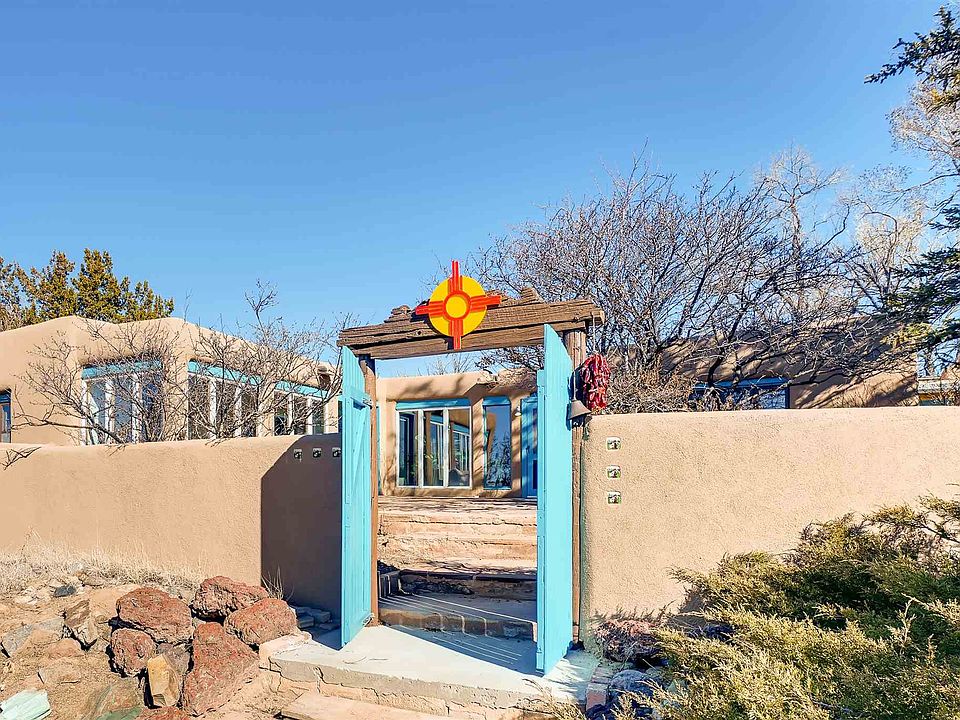 Turquoise Six is a ranch retreat and home that once belonged to the famous Western Writer Jack Schaefer, author of the book Shane which was made into a major motion picture (1953). This 13.5 acre oasis with an old pond is located on a migratory path for birds. The property is one of the most scenic parcels of land adjacent to The Turquoise Trail Highway 14 and less than 30 minutes from the Santa Fe Plaza. The main house features an attractive adobe fireplace that welcomes you and your guests into the home. The master bed and bath, two additional bedrooms, and a second full bath. The Master Suite has its own kiva fireplace with 3 closets and a jacuzzi tub. The additional two bedrooms have nice separation from the Master Suite. A cook's kitchen with many upgrades is ideal for farm to table living. An attached solarium will keep you warm and your plants growing throughout the year. A completely renovated casita and two car garage offers income potential or New Mexico style hospitality for your guests. Appliance upgrades include a gas stove, oven, and newer refrigerator. The artist's studio and a greenhouse are separate from the casita and perfect places to watch the sunrise and spend endless sunny days with your horses, donkeys, mules, llamas, goats, cats and dogs. A newly built six car garage is ideal for the mechanically inclined, machinist, hobbyist, woodworker, metalsmith, jewelry maker, biker and or cyclist.