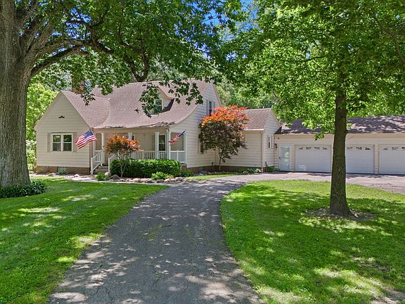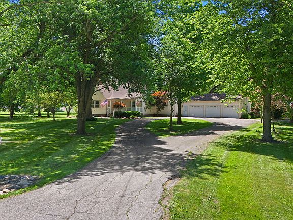 Charming 4 bedroom, 2 1/2 bath home situated on 4.1 acres. Home has open staircase with original wood banister, large living room with a lot of natural light. Living room has fireplace with a wood burning insert. Large eat-in kitchen has granite countertops, island with seating, plenty of custom cabinets, farm sink and separate cooktop and oven. Main floor has 2 bedrooms or use as flex spaces for office or den. Main floor full bath has granite countertop, make-up vanity and new walk-in shower. Also main floor powder room. Two adorable upstair bedrooms, both with dormers, full bath has oversized soaker tub/shower combo and original tile work. Basement is partially finish for extra entertaining space. Outside you will find nice front porch, 3 car attached garage, asphalt drive, large yard with mature trees and landscaping. Hand hewn beam barn with metal siding/roof and fenced in area for your minifarm!