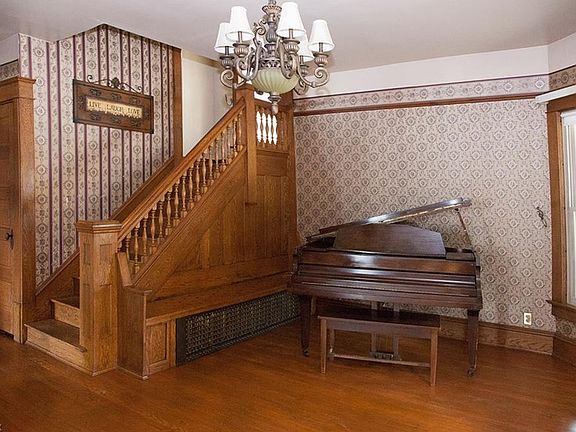 Beautiful inside and out! Among the most well kept historical homes seen. Ready for sale with inspections complete. Wide baseboards, crown molding, front porch swing, private back yard with hot tub, brick patio, pond, and flower garden, vinyl white pick fence. The two story barn serves as a garage with electric, and water. Parking for 5 with additional in shared alleyway. The hand crafted front door welcomes you into the front room where the paneled staircase makes its statement. Gorgeous pocket doors. Hand crafted fireplace covering with a custom ceramic tile accent. Bay window, built in cabinets surrounding the gas fireplace, and plenty of space for the Thanksgiving day feast. Kitchen island, walk in pantry, and a true cook's stove The basement is roomy and so are the closets. New Septic done in 2006, New windows in 2004. Front windows are leaded glass and triple paned for quiet living. Hot water run by gas. New Boiler in 2004. New porch roofs in 2013. Home inspection completed, and noted minor repairs under way. Seller is also providing a home warranty. Historical buyer's dream.