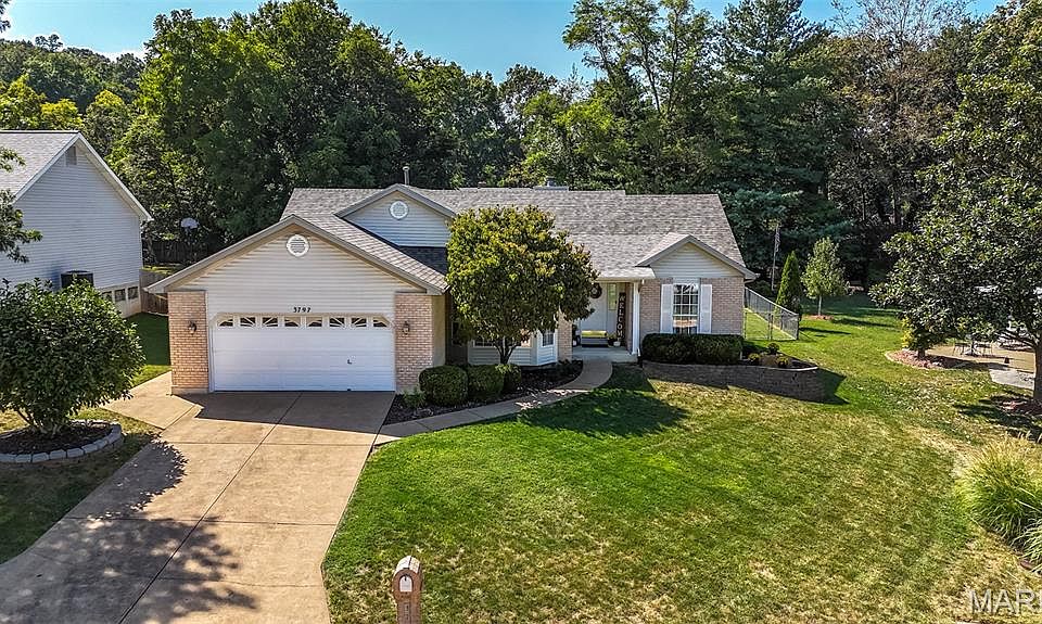 Welcome to 3797 Falcon View Dr, located in a highly desired neighborhood in Arnold, MO. This beautiful 3-bedroom, 2-bath ranch offers 1,777 sq. ft. of comfortable living with a sought-after split bedroom floor plan. The vaulted Great Room features hardwood floors and a cozy gas fireplace—perfect for chilly winter nights. The kitchen and breakfast room also boast vaulted ceilings and hardwood floors, with all appliances new since 2023, plus a bay window in the formal dining room. The spacious primary suite includes a walk-in closet and large vanity for added convenience. The unfinished lower level provides endless possibilities with a rough-in bath and abundant storage. Step outside to a level, fenced backyard—ideal for kids, pets, and entertaining on the patio. Additional highlights include a 2-car garage and easy access to Hwys 141 & 55, along with nearby restaurants and shopping. Don’t miss the chance to make this your new home in time for the holidays!