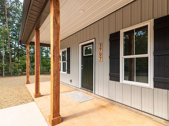 Opportunity to own an almost-new house with 1,560 sq feet on ONE level! Beautiful home with a modern open floor plan. Large primary bedroom is complete with a large shower, and 2 other bedrooms on the other side of the home feature a centered bathroom off the hallway. The home has a separate laundry room, and you'll love the covered front porch, and back patio. Almost 2 acres of land. A metal roof and metal exterior siding ensure maintenance free living for years to come. Home has been recently painted and kitchen appliances are included. Energy efficient heat pump is in place, and since the home is so new and built to modern code, your utility costs will be low. Show and sell!