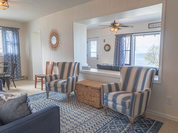 This is your chance to own an enchanting lake front retreat with 273 feet of shared beach access on the pristine shores of Lake Huron. Offered fully furnished, this 2-bedroom, 1.5 bath with spacious loft offers the perfect getaway and plenty of sleeping space for family and friends. Enjoy unobstructed panoramic views of Lake Huron from the patio, bedroom, or living room, where natural light fills the space. The large backyard, shaded by mature trees, provides a serene setting for outdoor activities and relaxation. With two separate living spaces, including a cozy loft, this home offer versatility and comfort. Whether you are looking for a vacation home or year-round living, this lakefront gem delivers tranquility and natural beauty. Don't miss this opportunity to own your dream lakefront escape. Seller is a licensed real estate salesperson.
