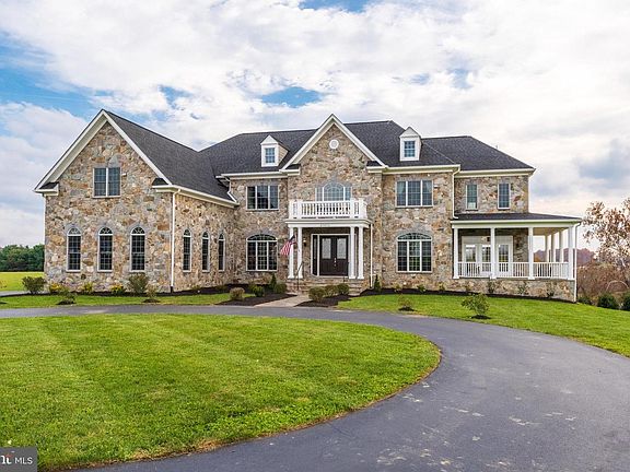 Handsome fieldstone and brick estate home beautifully sited on 17.36 acres in private Catoctin Creeks. Custom home with top-of-the-line construction, gorgeous design, finest quality material, state-of-the-art audio, visual & security systems and intercom on 3 levels. Dramatic entry (ceiling 19 Ft) with an elegant winding double staircase. The main level has 10 Ft ceilings except the Family Room has a two-story coffered ceiling and stone fireplace. Adjoining the family room is a Study and Powder Room. There is also a 2nd staircase to the upper level. The Gourmet Kitchen is a chef's delight with top of the line Kitchenaid appliances including 2 dishwashers. six-burner gas stove with 3 ovens! Adjoining the Kitchen is a morning room for casual dining. There's also a Sunroom that extends from the front to the rear of the home with ceiling fans. Outside the sunroom is an expansive dining & relaxing covered porch perfect for enjoying on a sunny or rainy day with incredible eastern vistas. Main & upper level flooring is Hickory Hardwood except for Laundry Room and all bathrooms which are tile. The laundry room has a laundry shoot, washer and dryer, built-in Ironing Board, custom cabinets, and dog bath plus the exit to the three-car garage. Upper level has a spacious Master Suite with a coffered ceiling and 3-sided gas fireplace, sitting area, 3 unique enormous walk-in closets, additional laundry with stacked washer & dryer plus built-in Ironing board. The spacious master bath has a soaking tub, shower, extra closet, and double vanities with granite countertops. The commode has a private room. The upper level has another suite with a spacious bedroom and private bath. There is a Princess Suite with a private bath and two additional bedrooms, and hall bath. There are a total of five bedrooms and four baths on this level. All flooring is Hickory Hardwood with the exception of the bathrooms. The lower level is incredible, and has 10 Ft ceiling and there is an abundance of natural light from the many windows and two double-door walkouts. The flooring is tile, except for the Home Theater. The Home Theater is 26' X 18' with top-of-the-line B&W speakers, built-in surround system, 100" Projector screen, Sony Projector, multiple internet drops for smart Projectors, (theater seating does not convey). It has beautifully decorated walls, lighting and carpeted floor plus extra insulation so that no sound interferes with the rest of the lower level. There is a sitting area with a fireplace that adjoins the spacious game area with a fully equipped bar and full bath. This area has a 7.2 audio system, Pioneer Receiver, B&W speakers, CLR and built-in wall surround sound plus multiple internet drops for smart TVs. There is excellent security with cameras & audio on the main and lower level plus the same on the exterior. The lower level also features an exercise room, wine-tasting room, wine storage cold cellar plus a locked security room. The residence has 10,072 finished square feet! The rear property has a spacious fenced garden to prevent animals from entering. Also, the back of the property has an orchard with fruit and nut trees and at the furthest point is Catoctin Creek. Catoctin Creeks is for horse lovers with it's horse trails. Horses, cows, or other large animals are welcomed. Poultry may be kept for the owners' use . Check Documents for Covenants. You will see horses and cows at the southern area off the property. They belong to the neighbor who uses the property for grazing which provides a Land Use provision for tax rate reduction on subject property. The property is for the most discerning buyer seeking privacy and all the beautiful & quality features that this home offers. THIS PROPERTY IS A MUST SEE!