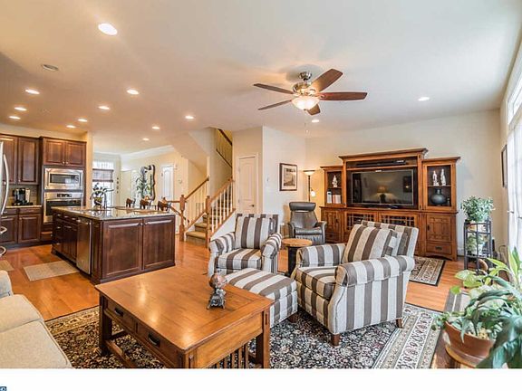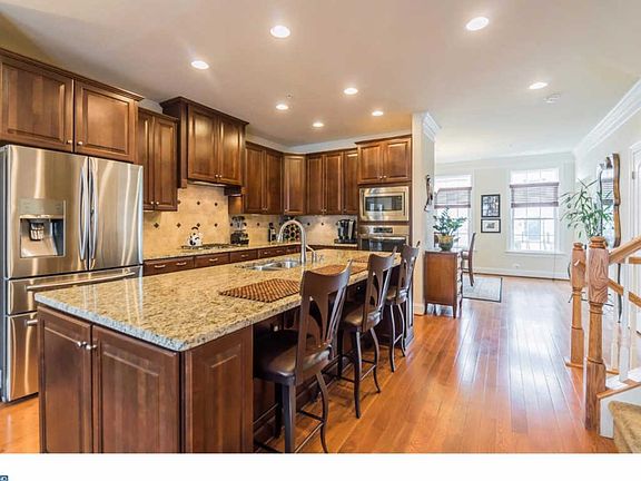 Immaculate and pristine describes this practically new luxury town home in Doylestown. Located in the Carriage Hill community, this 4 bedroom, 3 ~ bath home is move in ready. Complete with numerous upgrades such as: hardwood flooring, 9 foot ceilings on all floors, 42" cabinets, granite counters, stainless steel appliances, upgraded trim and crown moldings, dual zoned HVAC and an open floor concept for today's Buyer. The first floor contains a center kitchen area with a large 8 foot center island perfect for daily gathering or entertaining. The family room is open to the kitchen and provides an abundance of natural light from the back to the front of the home. Hardwood flooring is throughout the first floor with warm tones to match the kitchen cabinets. Step out back from the family room, and you will enter onto a composite deck, extended during construction and be totally amazed by what's next ? the current owner built a gorgeous patio/garden space out back to provide privacy and additional outdoor living. A true retreat space and unique for town home living. The front landscaping was also completed at the same time to truly make the exterior of the home match the beauty of the inside. Proceed up to the second floor and you'll find a large owner's bedroom with a tray ceiling, owner's bathroom with double vanity, dual head shower stall, upgraded tile work, granite and a large walk in closet with custom built-ins. The laundry room is conveniently located upstairs along with 2 nice size bedrooms and a hall bath. The 3rd floor contains the 4th bedroom with a large walk in closet, also outfitted with custom closets, a full bathroom and a stunning balcony for spending some time outside and breath in the fresh air of Bucks County. The finished basement is separated into two spaces: a study/home office with French glass doors & a large family room/entertaining space for all occasions. The basement has a large egress window providing natural light along with 9 foot ceilings. Carriage Hill is just minutes from Doylestown Borough, shopping, restaurants, Peace Valley Park and major traffic routes like 202, 611 and 263. Come schedule a visit and preview this wonderful home!