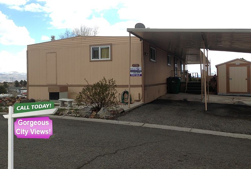 Features: Spacious 2 bedrooms, 2 bath, 1248 sq ft home in a quiet family park. This beautifully remodeled home comes with carport, wood shed, covered deck and covered patio with million dollar views of the city and the surrounding mountains. Inside comes with laminate floors, dual pane windows, newer paint, newer carpet, new doors, new light fixtures and central air. The master bedroom comes with a private bathroom and a walk-in closet. The kitchen comes with a pantry and all appliances are included. Close to freeway, shopping, bus lines and entertainment. Terms: Bank financing may be available On Approved Credit or Owner Will Carry with $10,000 down minimum! Call today for additional details! Click here for application! For questions or to schedule your private showing, contact: Stefan Szabo (775) 225-2809