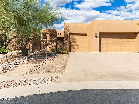 Welcome to refined Foothills living in one of Tucson's premier gated communities. This residence offers a 4-bedroom split floor plan that blends comfort and privacy with ease. Expansive windows showcase striking mountain views, creating a serene backdrop throughout the home. The outdoor environment is equally impressive, featuring a crystal-clear pool and spa designed for relaxation and enjoyment year-round. Interior spaces flow naturally, offering inviting living areas, thoughtful layout, and timeless appeal. The setting is quiet yet conveniently close to dining, shopping, and scenic trails. A well-kept property that captures the essence of Foothills tranquility and lifestyle.