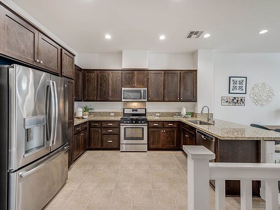 Welcome to the award-winning Canopy at Timber, built-in 2015, this community features single-family attached townhouses that embody a fresh Craftsman architectural style and standout features including bright color pallets and lush landscaping. Enjoy modern convenience in this tri-level townhome boasting high ceilings, immaculate interior living space, and an attached 2-car tandem garage. Inside, the main living area reveals a spacious great room consisting of a modern kitchen, dining area, and family room. The kitchen features shaker-style cabinetry, granite slab countertops, a full suite of stainless steel appliances, and an expansive breakfast bar providing adequate space for meal preparations and casual dining. Adjacent to the kitchen is a full guest bedroom and bathroom. On the upper level, the exquisite master suite features high ceilings, plush carpeting, and double walk-in closets. The ensuite bathroom is appointed with a stall shower and a double-sink vanity. An additional well-sized bedroom and an attached bathroom are also located upstairs along with a laundry closet featuring a side-by-side washer and dryer. The Timber community offers its residents several common amenities including a clubhouse, outdoor bbq and patio, a children's playground, and walking paths.