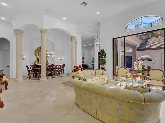 Freeform poolDecorative columnsVolume ceilingsAccordion hurricane shuttersPlantation shuttersSolid core molded doors