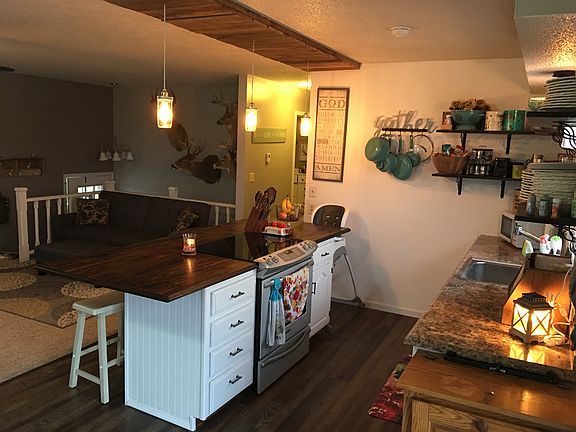 For sale is a beautifully-remodeled 3 bed, 2 bath home sitting on almost 4 acres, located just 2 miles from town. This home was remodeled in 2015 with modern accents all through the house. The upstairs features a huge master bedroom, updated full bathroom, and open floor plan, blending the living room, dining room, and kitchen. The basement is full and finished, offering 2 bedrooms, a beautiful bathroom, 2nd living room area, bonus room, and laundry area. This home is turn-key ready so schedule your appointment today. With a price of $117,500 and outstanding views to the south and east, this property will not last long!