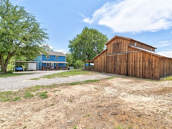 This ranch is a unique 95 acre property, situated between the Greenwood Road and Ellis Road with quick access to Interstate 20. This property's charm begins with a quaint two-story farmhouse with front and back porches and a second story deck to enjoy the views of the property. A meandering spring fed creek with waterfalls viewable from the home. Large post oak and live oak trees dot the landscape providing wonderful hiking and horseback trails. This property has been sectioned into 4 main pastures allowing for rotational grazing of cattle and horses with multiple sheds to shelter them. A beautiful two-story Amish style monitor barn sits at the front of the property.