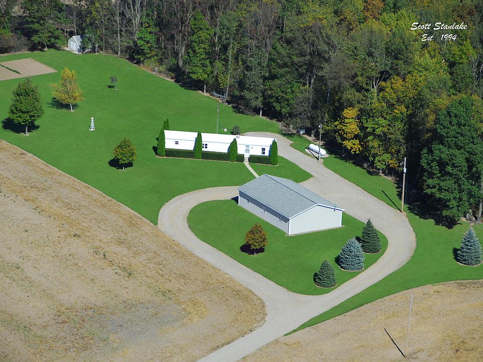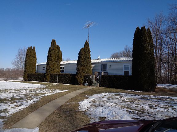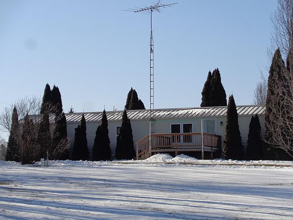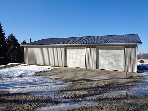 a 1985 Commodore 14x70 mobile w/double insulated metal roof, 6 in sidewalls, replacement windows, tankless water heater, 54x34 pole bldg.w/10 ft ceilings, 10x9- 2 in. overhead doors, heated, insulated, water, crane, 5 in. floor w/drain,The ultimate workshop with many uses. 12x15 deer blind/storage shed. Over 30 deer taken since 94. land is crop rented & to be pro rated, LP tank and generator are owned and negotiable as owner will take both to new home. Great setting off the road and private. 12x12 deck in back w/a 5x8 storm shelter.