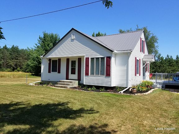 This move in ready home has been completely updated inside and out. Beautiful oak kitchen with new appliances. Hardwood floors in kitchen, dining and bedrooms. New metal roof, seamless eaves, siding, exterior/interior doors. Fresh paint and new carpet. second bedroom on main level could be converted to laundry room (plumbing is in wall). Third bedroom is a dormer bedroom on the upper level. (could use new carpet). Two stall garage with openers and concrete floor. Wired for generator. Central air. Basement sill plate was insulated by Reto foam and has transferable warranty.