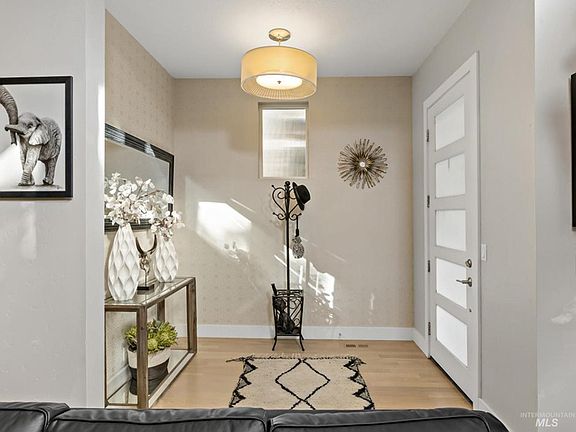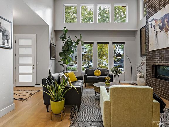Exquisite modern home in the highly sought after Mill Station. Mature trees line the quaint neighborhood within walking distance of the best of what Harris Ranch and East Boise have to offer. Just steps away from popular restaurants, Barber Park, Boise River, fly fishing, the Greenbelt, hiking trails, Marrianne Williams Park, Lucky Peak, the Shakespeare Festival and more! After enjoying the amazing lifestyle this neighborhood has to offer, step into your beautiful open concept living area with soaring ceilings flooded with light from the stunning windows and get cozy next to the sleek black fireplace. The gourmet kitchen offers beautiful white quartz countertops, ss appliances, wine bar with custom cabinetry. Just off the great room is a comfy sitting room and side yard patio. Upstairs is a beautiful primary suite with zen room and stunning bath, complete with oversized shower and walk-in closet. Secondary bedrooms are spacious, hall bath has dual vanities and separate shower space.