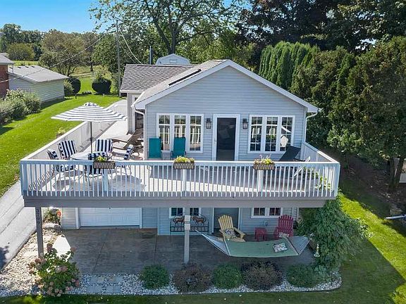 Lakefront Gem on Round Lake, adjacent to Devils Lake. Recently updated, the light filled and welcoming home features an open floor plan, vaulted ceiling, finished walkout, 3B/R, 2 baths, large wrap-around deck, covered patio, 2-car garage and newly paved drive offering plenty of parking. Level lot to the sandy waterfront with natural stone seawall and waterfront deck.