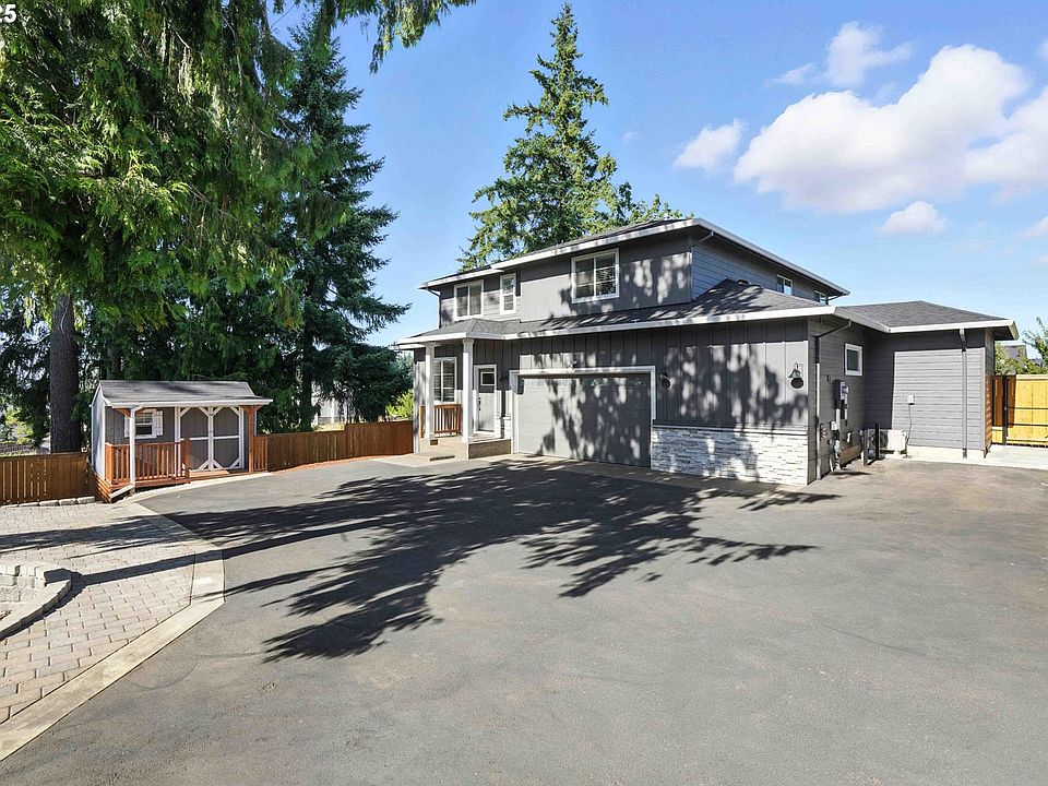 One-of-a-kind property tucked away on a private drive with two separate entrances! This unique home offers a flexible layout with an additional living area featuring its own entrance, front yard, one bedroom, full kitchen, bathroom, living room, washer and dryer, and a split heating system, perfect for guests, Airbnb with Mt. Hood Views, or multigenerational living.The ADU was recently added, with sellers investing $150,000 into its construction and upgrades. The main house features 4 bedrooms plus an office, 2.5 bathrooms a spacious living room with a gas fireplace, high ceilings, and laminate flooring. A long private driveway offers RV parking with hook-ups, a storage shed, and generous storage space under the home. The fenced yard provides privacy and peace, all just moments from a local park and community garden. No HOA!