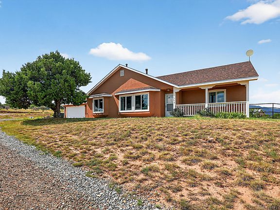 Bring your horses! This 2.5 acre property includes a 48x36 barn with four stalls, tack room, water and 100-amp power. Outside has pipe fencing, turnouts and shelters. Don't overlook the charming three-bedroom, two-bathroom home nestled in the East Mountains with breathtaking mountain views, stunning sunrises and unforgettable sunsets. Updates include new stucco and windows (2023), a new roof (2024), an updated kitchen with a customized island and newer appliances. The master suite offers an updated bathroom featuring a walk-in shower with horse murals. Ceramic tile flooring throughout the home. Additional highlights include a new dishwasher plus newer water heater and high efficiency furnace. Don't wait, schedule your tour today!