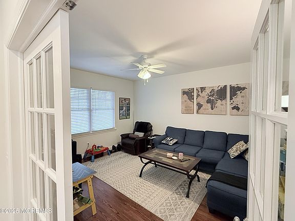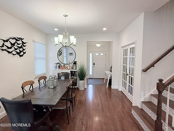 Location, location! Tucked away in the heart of Eatontown, this 10 year old Colonial sits across the street from the highly anticipated Netflix movie studios and a mile east of the upcoming ''metroburb'' by the Holmdel Bell Works developers at the CommVault complex. This home is accessible via a shared, private driveway and is located within 1.5 miles of FIVE supermarkets (Shoprite, Trader Joe's, Uncle Guiseppe's, Lidl, and Amazon Fresh). Nearby thoroughfares make any commute a breeze - Route 18, Route 35, Route 36, and the Garden State Parkway. Inside, it includes 9 foot ceilings and premium hardwood floors throughout. Also furnished with faux wood blinds, upgraded LG appliances, two year old Bradford White water heater, and two zone HVAC system. The bedrooms boast ample footprint and closet space. A whole-house Aquasana water filtration system provides great water quality, while a quick-connect gas line on the exterior provides added convenience for hosting barbecues and outdoor gatherings. The den, with french doors, is flexible enough to be used as a home office, kids playroom, or man cave. A sturdy vinyl fence encloses the backyard, offering privacy and security, while a large concrete patio, adorned with a sturdy gazebo, invites relaxation. The spacious two-car garage, equipped with a 240v outlet for electric vehicle charging and an included steel cabinet system, caters to the needs of modern homeowners. This home is being sold as part of the seller's transition to a new residence. A flexible closing timeline may be preferred to align with the seller's next home purchase. Buyers able to accommodate a smooth transition are appreciated.
