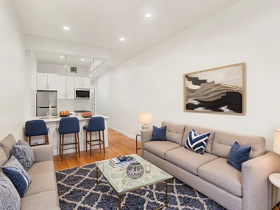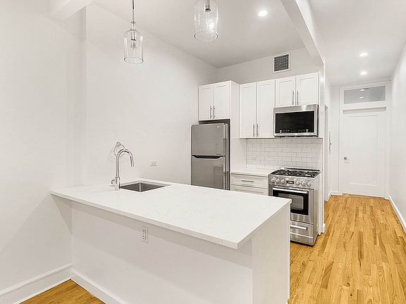 Renovated Carroll Gardens Apartment with Open Kitchen & Shared Garden Space. This first-floor apartment offers tremendous flexibility and plenty of space to spread out. An open-plan living, dining, and kitchen area divides two private rooms on opposite sides of the apartment. An open kitchen with a peninsula and breakfast bar features Caesarstone countertops and full-size stainless steel appliances, including a four-burner gas range, microwave, dishwasher, and refrigerator. In the middle of the apartment sits an open living room that can extend into the front room. 38 3rd Street is a fully renovated 8-family building with great features like modern recessed lighting, video intercom, and restored hardwood floors. It recently underwent a complete modernization and is equipped with the Latch keyless security system, allowing residents to securely and remotely manage access. A full-time managing agent is professional and responsive, providing an online portal for rent payment and maintenance requests and a dedicated superintendent. The building is just about one block away from the F and G trains' Carroll Street station. Enjoy outdoor dining or takeout from great local eateries on Smith and Court Streets and in nearby Gowanus. A Whole Foods Market is located just down 3rd Street at 3rd Avenue.