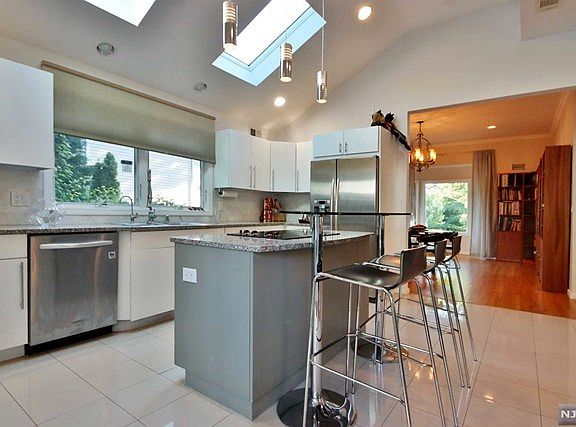 Located on one of the quietest most prestigious streets on the North side of Fair Lawn, this house offers incredible privacy and convenience. You notice the posh professionally-designed interior as soon as you enter the house. Two-story entry foyer, open concept layout with 10ft ceilings throughout the 1st floor. Sunny open kitchen where you entertain a party or enjoy a quiet family meal. Sunny and oversized master-bedroom retreat, located on it's own separate level, complete with extra-large large walk in closet, and a recently renovated master bath with high-end finishes and Porcelanosa tile. Generous storage space, rare 2-car garage. Energy efficient features (high efficiency TRANE HVAC, LED lighting, owned solar panels, Andersen windows, Stucco facade) cut your electric bills in half. House completely rebuilt in 2003 on existing foundation. Minutes away from NJTransit express bus, schools, places of worship, dining, shopping, Berdan and Saddle River Parks, and more.