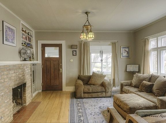 Charm, location & convenience. Historic move-in ready 4 bed*, 2 bath(full) with fine Arts & Crafts details. Wood burning fireplace, sunbathed living area, enclosed 3-season front porch, hardwood floors, lovely private fenced backyard extensively landscaped w/herbs, perennials, raised beds & multiple fruit trees and a tree house. DD heated garage w/220 wiring. Off street parking on driveway.