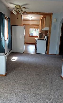 2 Bedroom Ranch. Living room with bay windows. New Kitchen cabinets and full basement with walk-out. Backyard with patio and garden area.
