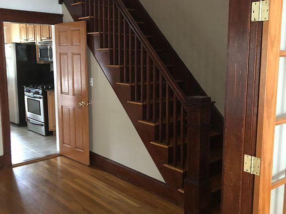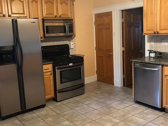 Large 3 Floor, 3 BR house for rent. Move in now pay October 1st. Finished basement with laundry area. Large deck & backyard. Comes with 2 parking spaces. 1 min walk to bus, 5 min walk to Commuter rail. 5 min drive to 95. Quiet side street & neighbors. Shops and restaurants walking distance. Tenants pay , gas, electric.
