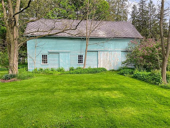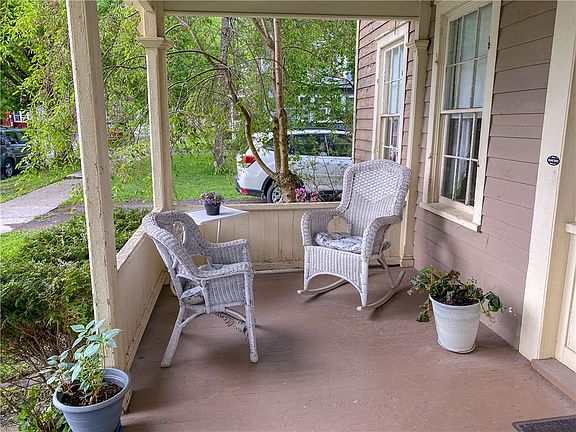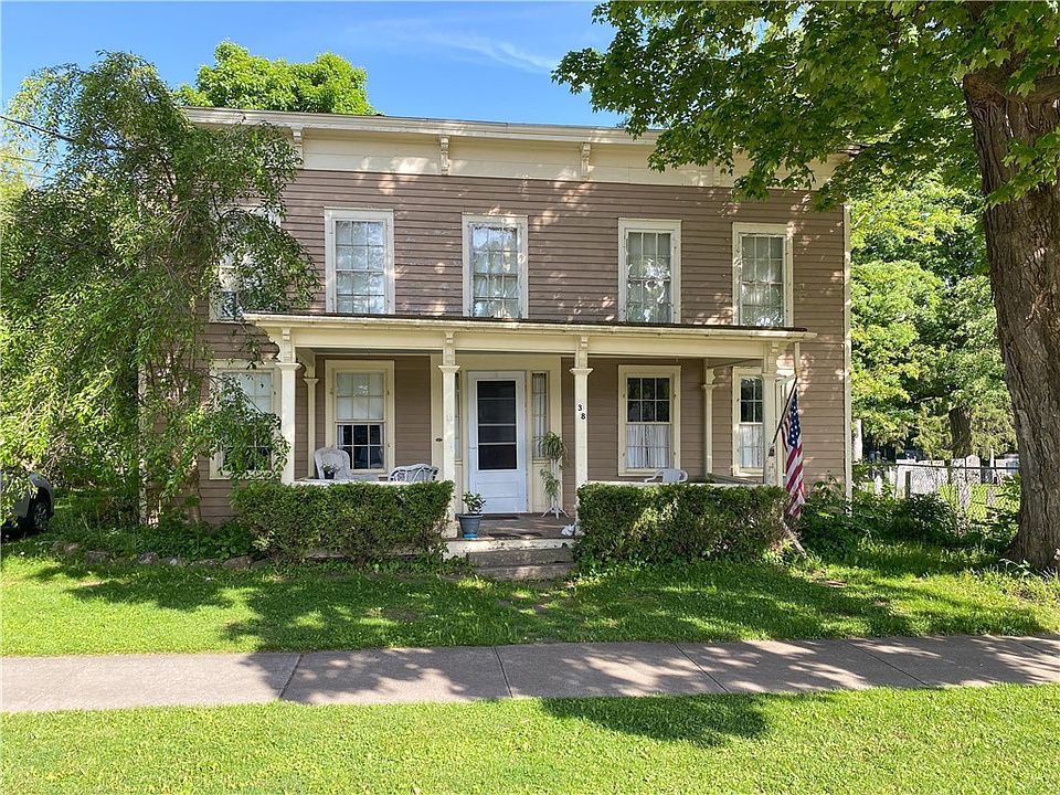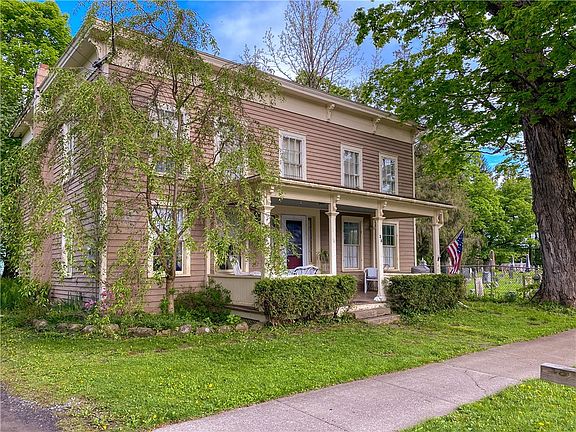 Walk to Cherry Valley's restaurants and shops from this 4+ bedroom village home or sit on the front porch and watch the world pass by. Located close to the edge of the village, the house sits on .40 acres and is bordered on two sides by the historic Cherry Valley Cemetery. At the rear of the large, flat yard is a 2,400+/- sq. ft. 2-story barn with electric. The front porch entrance of the house leads into a center hallway. To the right is a large, sunny dining room featuring a stunning two panel mural painted by M. Stiles depicting the Cherry Valley Massacre of 1778. To the left, glass French doors lead into the living room. Another entrance in the back of the house enters into a mudroom, laundry room, and spacious country kitchen. A room currently used as an office could be a first floor bedroom as there is a full bath on this floor. Upstairs there are four bedrooms, another full bath, a large landing and hallway linen closet. A walk-in attic has been insulated and is used for storage. The basement is dry and has a new heating system. Only 15 minutes to the The Glimmerglass Festival, 20 minutes to Cooperstown and one hour to Albany.