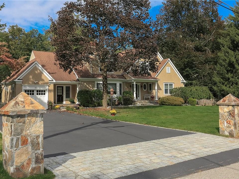 Beautiful, lovingly maintained, custom built in 2004 updated Cape Cod/Colonial with landscaped, useable level property, on a quiet, desirable cul-de-sac. WALKING distance to train, town, restaurants, worship and shopping. Huge EIK w/custom cabinetry, high end appliances, granite counters, new wood floors, walk-in-pantry, Family Room, Dining Room, all with French doors to the stone patio perfect for gatherings and entertaining. Living Room w/wood burning fireplace and decorative mantel, wood flooring throughout, freshly painted, crown moldings, vaulted ceilings, 4 full baths, 4 bedrooms including master bedroom suite, gorgeous bedroom with turreted window seat & loft, custom closets, whole house entertainment system, 5 zone heating/AC, full unfinished bsmt and more. Unfinished space upstairs for possible expansion. Private, end of cul-de-sac location w/town water & sewer.Don't miss this very special home with great curb appeal! Star Rebate of $1799 not included. Tandem garage possible.