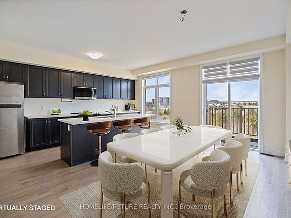 Motivated Seller - Discover this stunning 2023 - built Castle Rock Homes townhome perfectly situated on a premium pie-shaped lot backing onto Fair Tree Pond. This rare Paxton model offers nearly 2,600 sq. ft. of elegant living space, featuring 9-ft ceilings on both main and second floors, creating a bright and airy atmosphere throughout. Beautifully designed with a modern open-concept layout, this home showcases a chef-inspired kitchen with Caesarstone countertops, stainless steel appliances, built-in microwave hood fan, and freshly painted interiors. The spacious family room features large sun-filled windows with pond views. Upstairs, the primary bedroom retreat offers a luxurious 5-piece ensuite with double sinks, frameless glass shower, and walk-in closet. Two additional bedrooms provide ample space for family or guests. The builder-upgraded in-law suite on the ground floor includes a private 3-piece bathroom, ideal for extended family or as a potential income-generating suite. Direct garage access and convenient laundry area enhance everyday functionality. Enjoy the tranquility of nature right at your backyard while being minutes to Remington Parkview Golf & Country Club, top-rated schools, parks, and all essential amenities. Located in one of Markham's most desirable communities-this home offers the perfect blend of luxury, comfort, and convenience. Don't miss your opportunity to own this exceptional property!