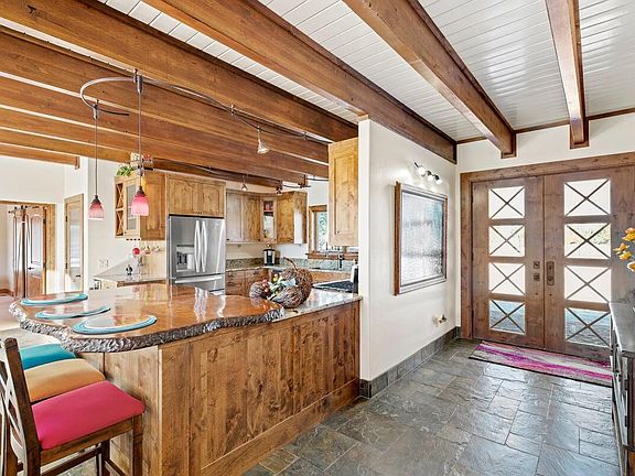 Stunning Sneffel mountain views from every room! Available fully furnished. This beautiful custom home was built to capitalize on the views and bring the beauty of Colorado indoors. The great room, dining and kitchen open floor plan lead to the large deck and hot tub through 16 FT sliding glass doors...an entertainer's delight. Custom cabinets, granite countertops, built in bar with wine refrigerator and counter seating at a custom ''live-edge'' juniper with copper inlay are just a few of the kitchen features. Enjoy the luxury of a spacious master bedroom complete with a stone fireplace, sliding door to deck and hot tub, barn doors with art nook, large windows and closet. The master bath has separate vanities, clawfoot tub, walk-in shower and stone floor. Seller is a Broker in Colorado.