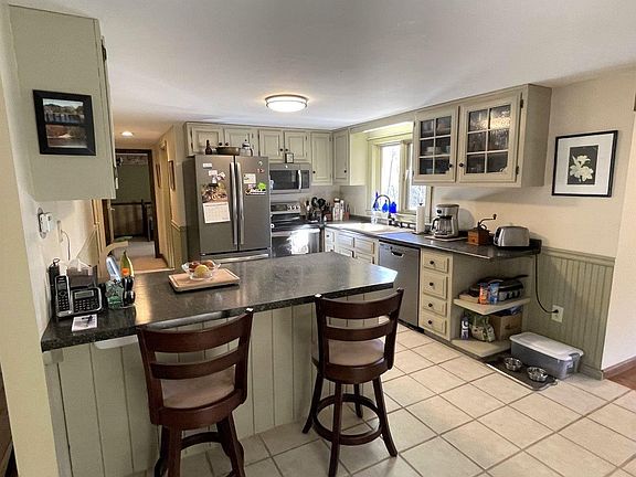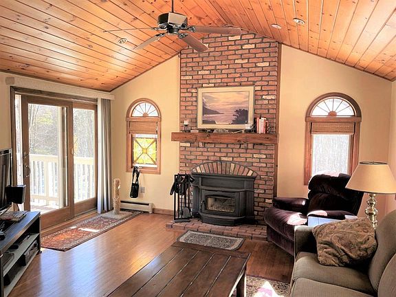 Your new home is here!!! Spacious L-Shaped 3 Bedroom Ranch with so much to offer. Bright and open fireplaced family room with vaulted wood ceiling and hardwood floor, lots of natural light. Patio door to deck overlooking wooded back yard. Wonderful kitchen with breakfast bar open to family room. Large dining room with brick hearth and woodstove, Custom tiled bath with clawfoot tub and seperate shower. Large tiled mudroom with exposed beams and sliders to patio. 2 car attached garage with auto openers. The walkout lower level has a Large L-shaped finished room with a brick hearth. Separate workshop and utility area, walkout. Nicely landscaped grounds. Great South Weare location.