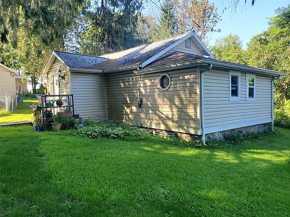 Ranch home on 1.17 acres+-. Corner fenced in lot. Two bedrooms, 3/4 bathroom with stackable washer and dryer. Eat-in kitchen. Living room. Entry foyer. Full basement with interior and exterior entry. 22'x26'+-, one car detached garage. 18'x20'+- metal out building. Includes all oil, gas and mineral rights. No signed lease. Conveninet to popular D&H Rail Trail that provides enjoyable hiking, etc..