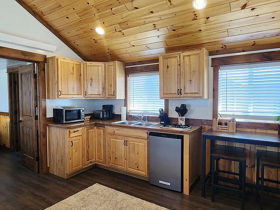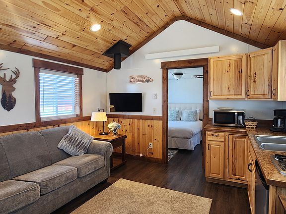 Small fully furnished cabin for rent just off of Main Street in Victor. Pets ok on approval. Kitchenette, bath is just a shower and toilet (no vanity). Walking distance to restaurants, Music on Main, and a short commute to Jackson. $1200.00/mo plus 150.00 for utilities for 1 yr. 1400.00/mo for 6 mos. Utilities include, water, electric, internet, trash, snow removal. 1st mo and security dep equal to a months rent to move in. Price slightly more for shorter lease.