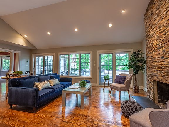 Beautiful and fully renovated, open floor plan, 5BR, 4.1BA Custom home w/ large flat backyard. Double height foyer leading to elegant living room w/ cathedral ceiling, gorgeous stone FP & two custom French sliders to deck. Formal DR w/ gracious coffered ceiling leads into the fam room. Gourmet EIK, granite counters, ss appliances, two wine refrig/bar area, built-in ice maker, center island w/ seating, desk, abundant Plain & Fancy cabinetry and two dishwashers.Three BRs on the first floor with two full BA. Upstairs is luxurious master BR, custom walk-in closets, private office/sitting room and lavishly appointed master BA w/ heated floors, dual sinks, Plain & Fancy cabinetry, and spa shower. Basement incl. den w/ FP, rec room, BR w/ en suite BA .Pella wind. Solid core wood int doors on 1st and 2nd fl.
