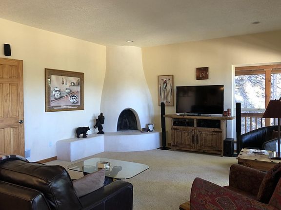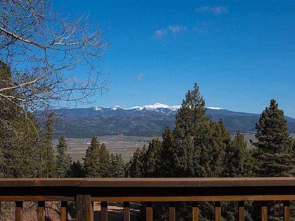 Welcome to 38 Back Basin Road.....This is a truly remarkable custom built home. Sitting on almost an acre of Rocky Mountain soil, this house will not disappoint. Beautiful deck on three sides for entertaining and for taking in the STUNNING WHEELER PEAK VIEW! With an open floor plan and guest bedrooms on a separate level from the master, privacy is assured. The master suite and office are on the upper level with a separate walk out balcony to enjoy the EVEN BIGGER VIEW and the smell of the pines. This area has a built in library , gas fireplace, office, walk in closet, soaking tub and shower. The kitchen is spacious with black appliances and granite counter tops. It has large windows and easy access to the deck for barbecuing and entertaining. The large center island makes prep a group activity! The living room/dining room with kiva fireplace and large panoramic windows brings the outside view in regardless of the weather. The bonus/game room also serves as a 4th bedroom and is accessible from the garage. ONE OF THE FEW HOMES IN ANGEL FIRE WITH CENTRAL AIR CONDITIONING! Fully furnished and accessorized. This house has been an excellent rental income property. Ask for those documents. Exception list will be provided.