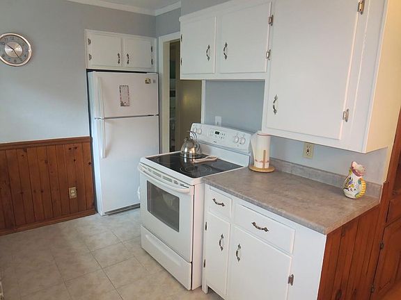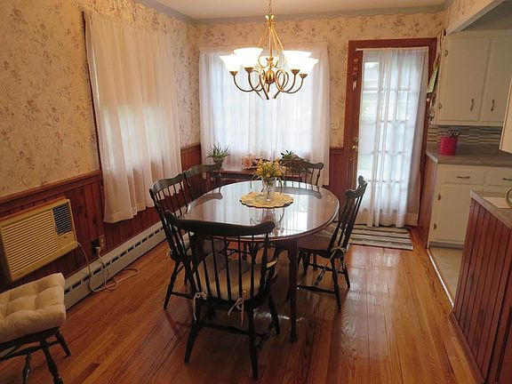 Neat as a pin and move in ready. Four bedroom cape with many updates. New kitchen countertops and backsplash. Refinished hardwood floors in the living room and dining room. Bedroom walls and ceilings are newly painted. Vinyl siding, vinyl windows and an updated boiler. Newly painted wood deck. Playroom and workshop suitable for either the handyman or craftsperson in the basement. Washer and dryer are negotiable. Fenced in rear yard with shed.
