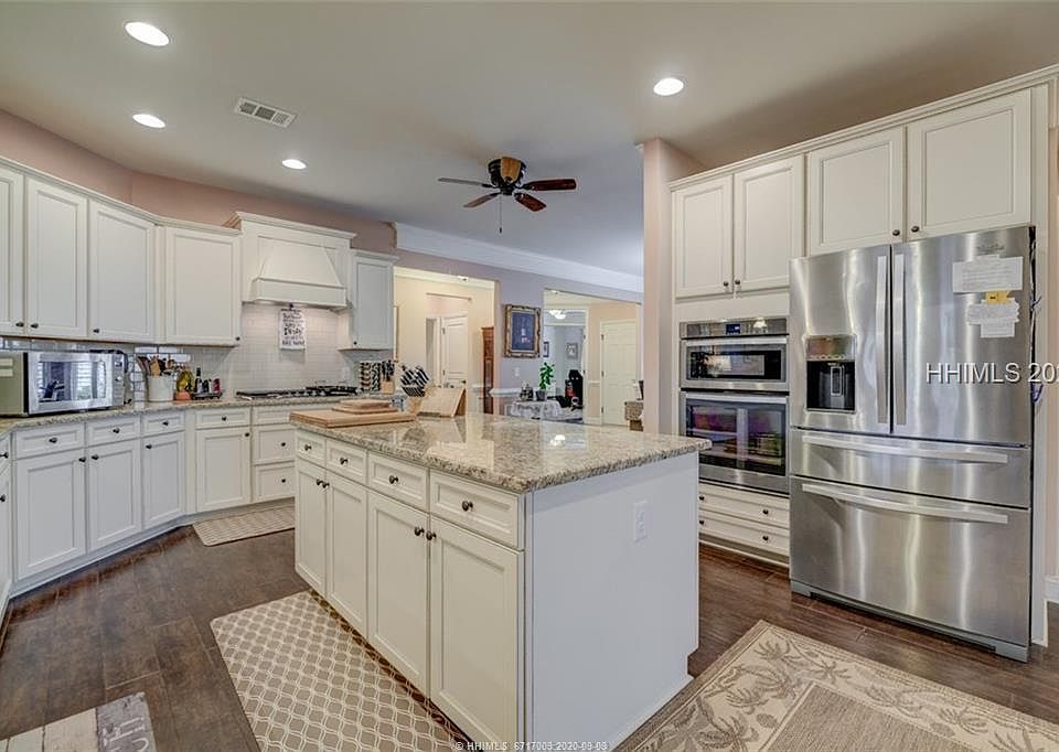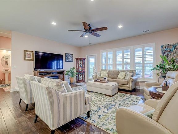 The BEST of Baynard Park in Bluffton! Incredible inside & out plus all on ONE LEVEL! Custom high-end finishes, gourmet kitchen, beautiful flooring, detailed millwork, an enormous covered+screened-in porch & a FENCED yard! Pretty lagoon view & outdoor living at its finest! Enjoy 2 bedrooms w/en suite bathrooms PLUS a 3rd bedroom/office PLUS a large den/media room off the kitchen which could easily become another bedroom. The open plan includes a separate dining room, spacious great room & GORGEOUS kitchen! Master suite is separated from other bdrms. Gated, pool/fitness/tennis, River Ridge/May River HS. Make 38 Bainbridge HOME ~ it's an 11/10!