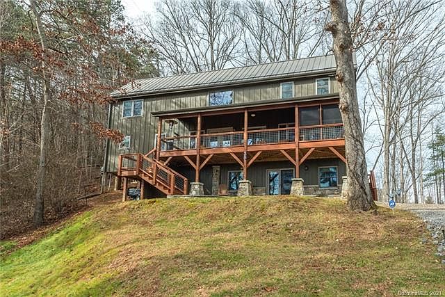 Be prepared to be wowed by this contemporary home in a woodland setting just 30 minutes from downtown Asheville. This light-filled beauty features an open layout with expansive views, cathedral beamed ceilings, three-story great room and fireplace, two separate bedroom suites (each with its own wing), large kitchen with new stainless steel appliances, bonus room (currently used as a den), two full baths and two half baths.Newly added living space with separate entrance includes a huge studio (currently used as combination office/piano room) featuring custom cabinetry, built-ins, wet bar, beverage cooler, and ice maker, plus a generous storage room and half bath. Outdoor additions include a large rear deck with screened-in porch and luxurious hot tub, stone front porch, custom storage shed, tool shed, and stone patio (currently used as fire pit). Also, large capacity generator, Gutter guards and a whole-house water filtration system