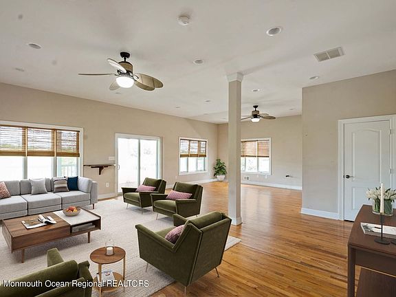 Stunning 5-bedroom, 3.5-bathroom waterfront home boasting breathtaking views of the bay and NYC skyline. Built in 2006, this 3,856 sqft residence offers a spacious layout across 3 levels of living space. The main floor features a formal dining room, bedroom, bathroom, living room, family room, and an eat-in kitchen with sliders leading to a deck with gorgeous views. The upper level comprises 4 bedrooms, a laundry room, and a master suite complete with a luxurious private full bath, walk-in closet, and sliders to another deck with even better views. The property includes a 5,000 sqft lot, a 2-car oversized garage, and a sizable lower level with an additional bathroom. Located just steps away from beautiful sandy beaches, this home is perfectly situated for coastal living at its finest. To help visualize this home's floorplan and to highlight its potential, virtual furnishings may have been added to photos found in this listing