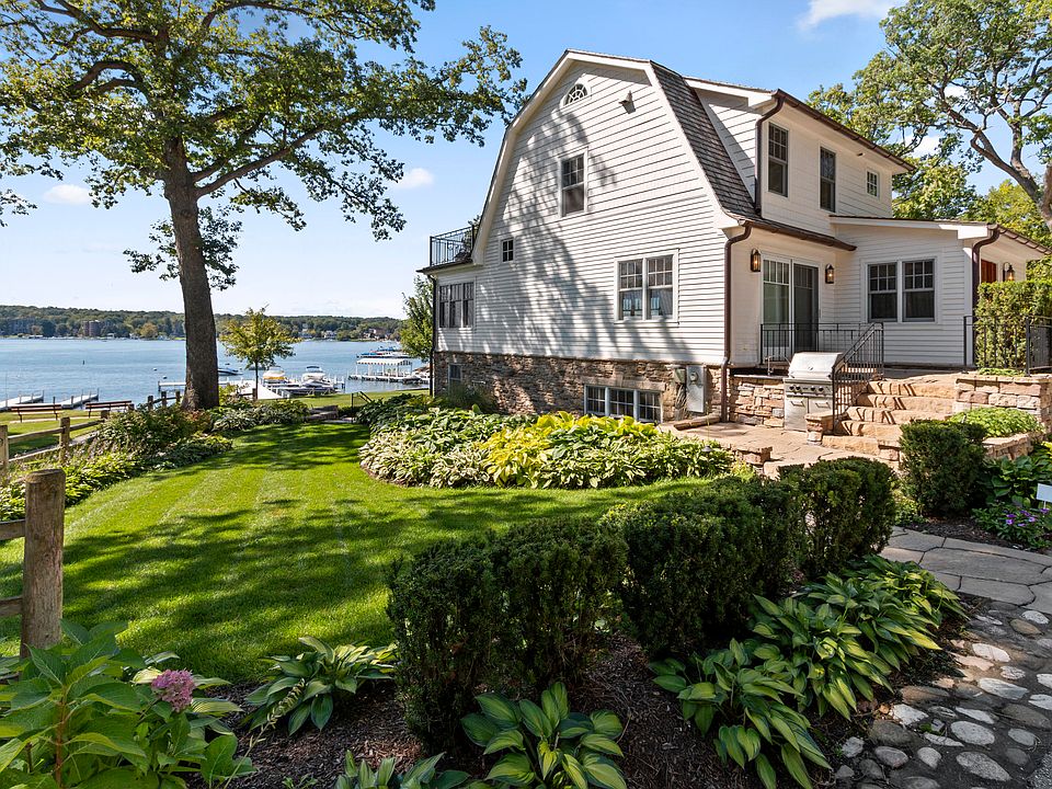 On park at Lakefront with amazing Sunset & ''the Best'' fireworks view! Bordered by parks, swim pier in front to use, but no in/out care. Renovated/Like New spectacular smart home boasts electronic blinds, music system, heated floors, built in cabinets/TV,s, fireplace, gleaming walnut floors & tiled baths Beautifully decorated and Furniture is Included! Offers great lake views & wonderful bright/open layout, great room with full wall of windows, open dining, kitchen with stainless appliances, granite tops/hi top table & grilling kitchen station just outside of slider. Master bedroom suite has its own deck, TV lifts from cabinet at end of bed, bath has soak tub & separate shower. Lower Level walks out to large stone entertainment patio. Includes Abbey Harbor largest 44x14 Boat Slip!