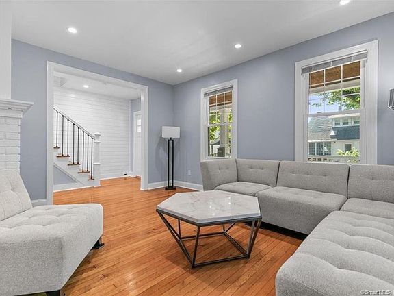 NEW HAVEN-Morris Cove Lovingly restored historic charmer just brimming with arts and crafts details. Brand new kitchen with classic white shaker-style cabinets, beautiful gray quartz countertops, wall-to-wall subway tile, stainless steel appliances, and custom open shelving and island. Gleaming hardwood floors, shiplap, and fresh paint throughout. New bathrooms. Stunning rocking chair front porch with stained Douglas Fir floor. Deeded beach rights. Walk to beach and several parks.