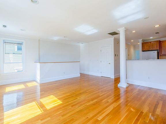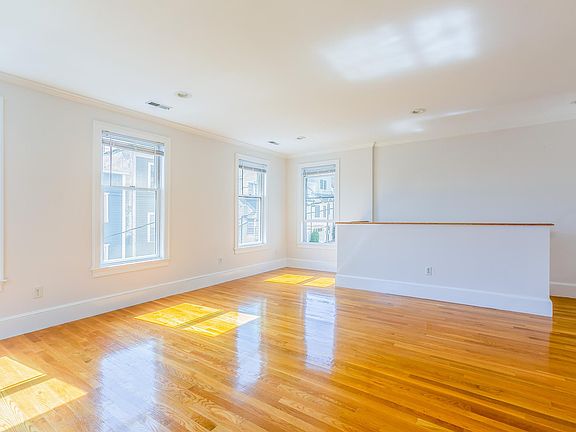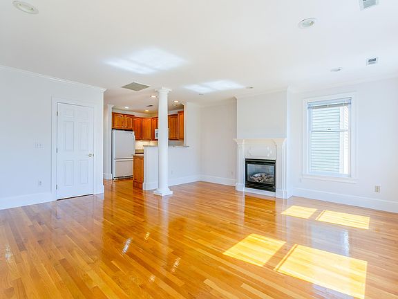 Close to all that Charlestown has to offer, this beautifully appointed 2 bed/1 bath penthouse level unit, floor through layout with windows on all 4 sides, is complete with PARKING & private outdoor space! Enter the unit to find your own private entryway. Head upstairs to the spacious open concept living room with windows galore for tremendous natural light with water views & hardwood floors throughout. Living room boasts soaring ceilings, gas fireplace & crown molding, open to tasteful kitchen featuring granite counter tops, breakfast bar, and ample cabinet space. Primary bedroom accommodates a king size bed and 2nd bedroom comfortably fits a queen. Both the primary bedroom & guest bedroom have generous space with double door closets. Central air, private back deck with partial water views and a deeded parking space complete this unit! Freshly painted! owner pays water & sewer, tenant pays gas, electric. first, last, security, broker