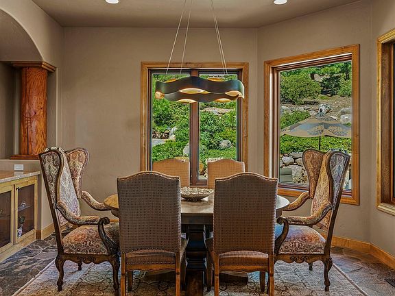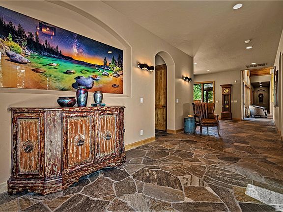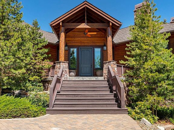 Nestled in the pine and aspen trees of St. James Village on 1.92 acres, a spacious mountain paradise with expansive views and breathtaking sunsets, wonderful wildlife encounters and outdoor adventures like no other is this magnificent Lodge Style home. The Main floor centers around the great room open to a spacious kitchen with top-of-the-line appliances; kitchen nook, formal dining room, master suite with heated floors in the master bath/shower, 2 home offices, 2nd bedroom/exercise room and powder bath., The large, covered deck and back patio with built-in barbecue grill and hot tub, provides the perfect area for entertaining and relaxation. Totally private. There is also a large two car garage on the main level. The downstairs centers around a Rec room with a full bar, wine cellar,2nd home office,2 bedrooms and 2 bathrooms and walk-out patio. An additional two-car garage and huge storage area finishes out the home. Laundry has a shower to wash your dogs and a doggie door out to a closed in area. Brown’s Creek Trail in your back yard, 10 minutes ski resort, 25 minutes Lake Tahoe, 20 min International Airport.