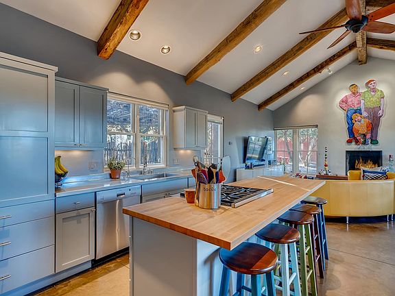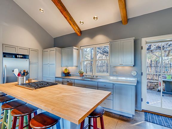 A true jewel! Magnificient main house and studio on nearly 3 view acres in Lamy. Gourmet kitchen with Wolf and Bosch appliances, custom stainless steel counter tops and butcher block island. Stained concrete floors with in-floor radiant heat. Master suite has fireplace, double sinks and separate tub and shower. Pitched roof with commercial grade steel. 2 x 10 construction. Casita/studio has kitchenette, wine storage and bath. Natural stone sculpture garden, well treed lot. Fenced raised bed gardening area. Whole house water softener and reverse osmosis under kitchen sink. Attached garden shed behind studio. Natural gas is in the road. Seller has received estimates of about 5K to bring the line to the house and retrofit or replace appliances. RADIANT AND DOMESTIC PLUMBING IS WIRSBO. Single level, no steps. No carpet. Storage space in the attic. Property on drip irrigation. Furniture package available.