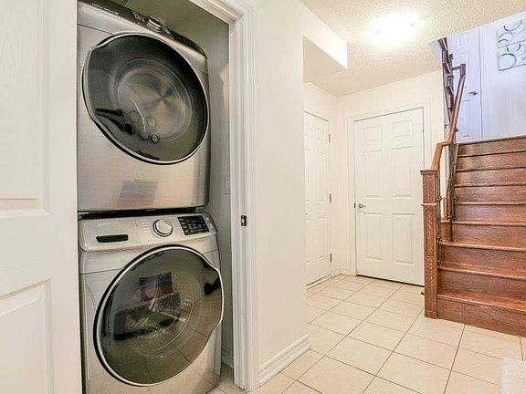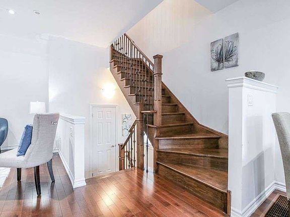 This 2 Bedrooms Freehold Townhome Located In The Heart Of Stouffville. End-Unit With 2 North Exposure Balconies. Modern Open-Concept Layout With Great Space Living And Dinning W/O To Balcony. Main Floor 9' Ceiling, Pot Light & Whole Through Hardwood Flooring, And Water Softener, Single Garage Plus 2 Driveway Parking Space